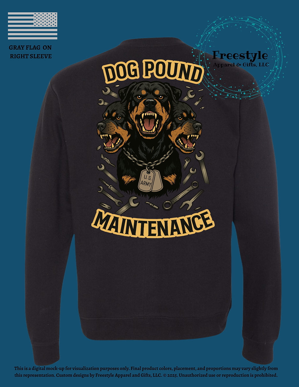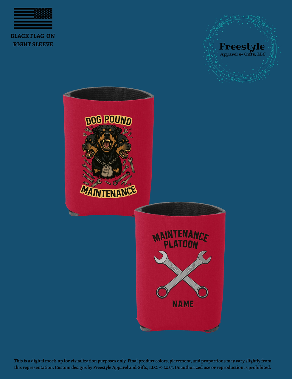 Below is the troop swag designed specifically for the Dog Pound Maintenance Platoon located at NTC, Fort Irwin CA.