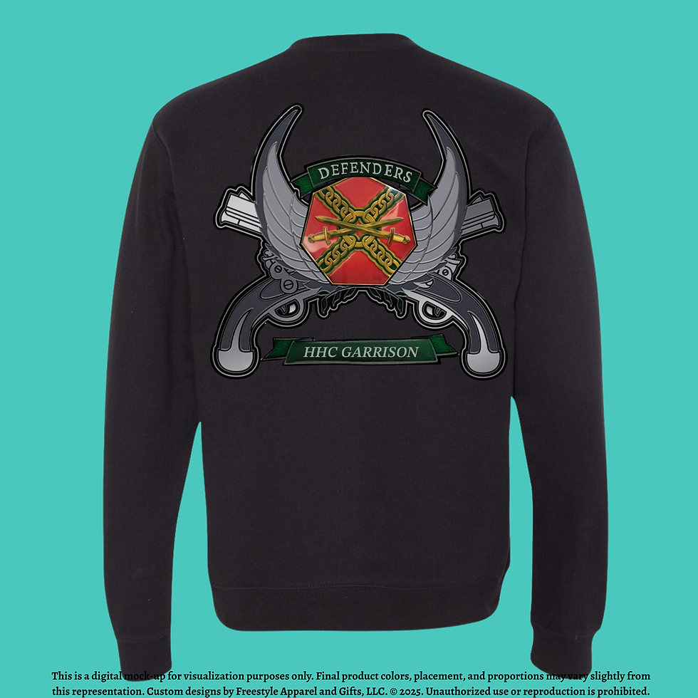 Below is the troop swag designed specifically for the Garrison Unit- HHC Defenders located at NTC, Fort Irwin CA.